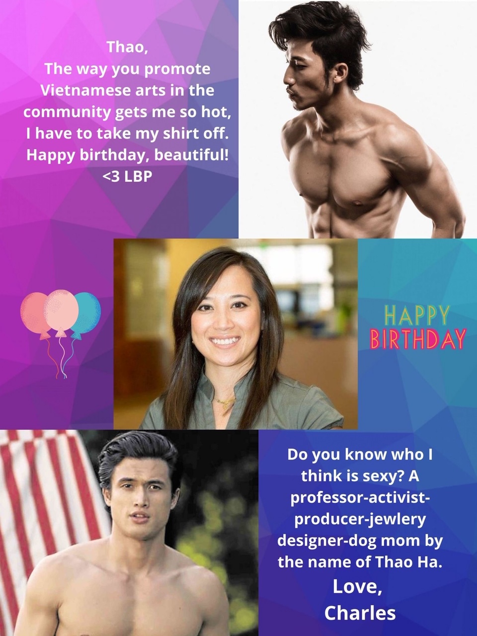 It was like a seed planted in a rich soil, and with a continuous flow of thoughtful messages pouring into me, the petals of joy blossomed from there. I felt that all was not going to be lost in the darkness I was in. Love found its way through the cracks of my heart. I got these incredibly funny birthday memes from some of my gal pals from VAALA (Vietnamese American Arts and Letters Association). I laughed so hard. They’re knock offs of Ryan Gosling “hey girl” memes, but replaced by Lien Binh Phat, a Vietnamese actor who had me crushing hard when I watched him in Song Lang, a film in Vietnam about love and friendship set in the backdrop of Vietnam’s fading opera music scene. What a hoot, I laughed so hard as the memes came through my phone one by one.