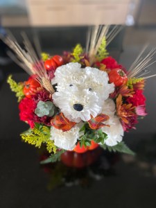 Throughout the day, a stream of flowers, candies, books, messages, and other gifts rolled in. Then a floral arrangement came from Vu’s sister, Jackie. She wrote the card as if it was from Vu. Recently, her fur baby, Duy, was laid to rest. She already lost Vu so losing Duy was another devastation. I told her, “Maybe Duy will keep Vu company.” So it was a delight to read the card she sent with the flowers. “Happy Birthday, Sweetie. Jackie sent Duy to me for my birthday so I wanted to send something similar to make you smile on yours. Love, Vu”. Check out the flowers. Isn’t it the cutest thing you’ve ever seen?!