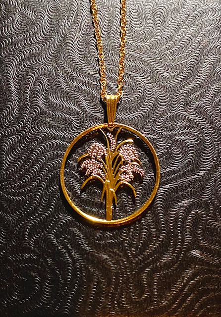 Finally, toward the end of the afternoon, a special gift from above came delivered by a special someone. This story is a super special supernatural one, one that I’ll share one day with the mystical details. It’s a pendant, hand cut from a coin minted in Vietnam. The design is a rice plant, representing the country’s staple commodity. The gift of a coin in jewelry form.